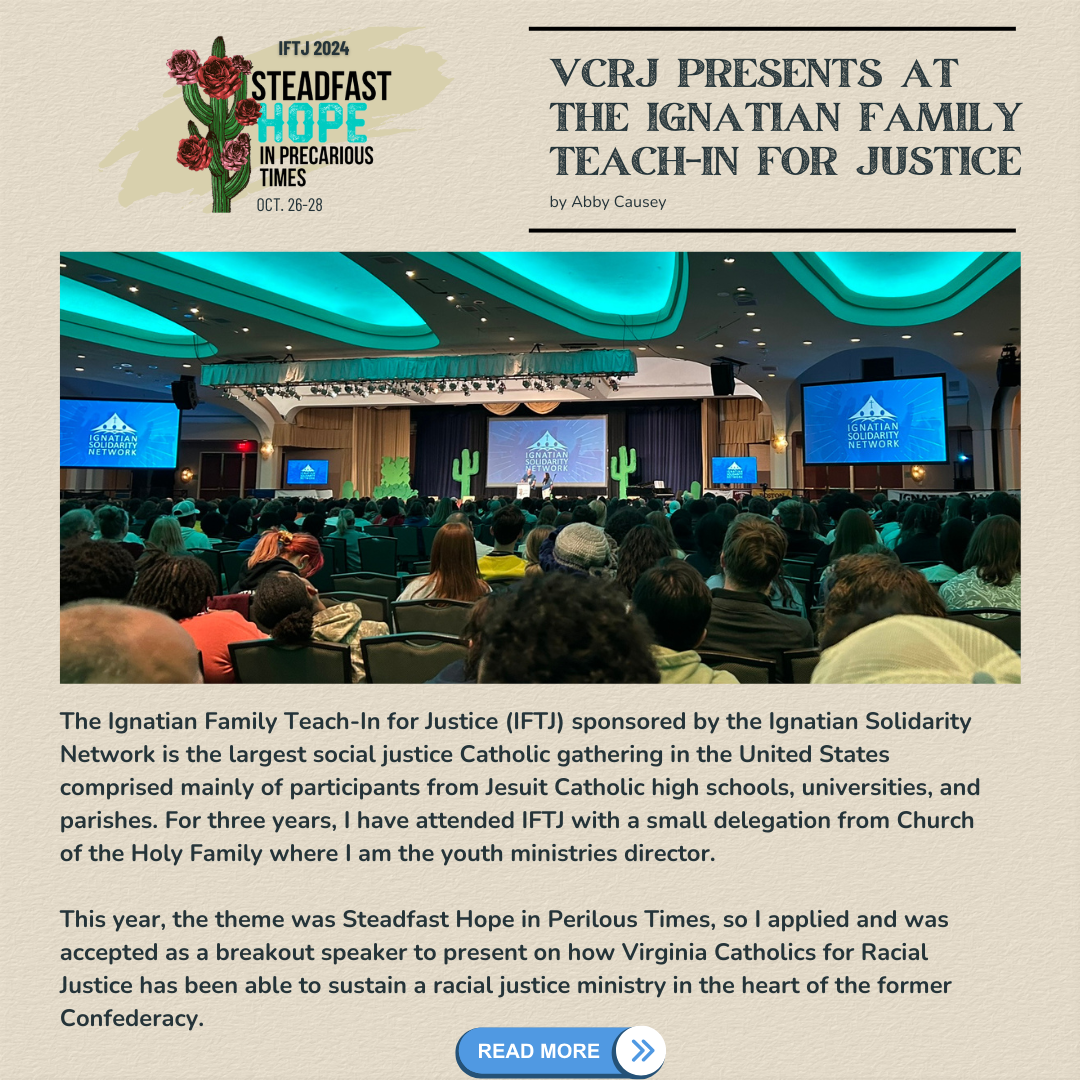VCRJ presented at the Ignatian Family Teach-In for Justice at the end of October and kicked off Black Catholic History Month with Dr. Schexnider’s visit to Saint Mary’s Academy and the Sisters of Holy Family in New Orleans.