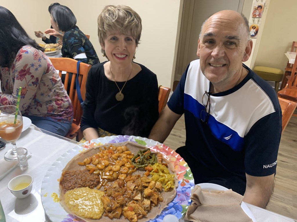 Liz and Joe Panchik enjoy Ethiopian and Eritrean food at Mesob in Virginia Beach